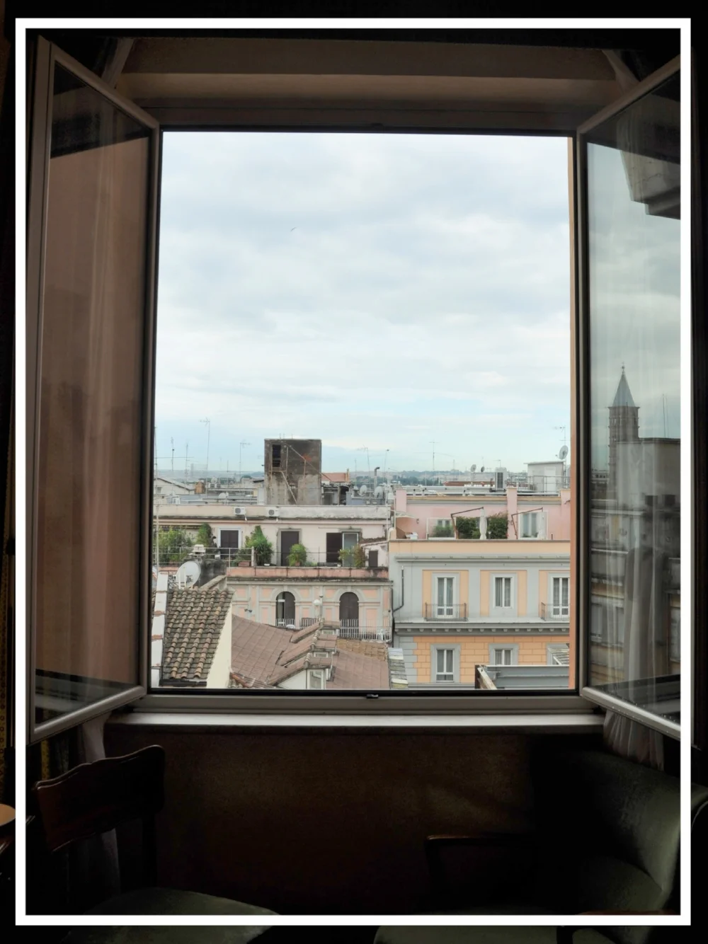 I cannot stress how much of a true beauty this property is. I spent 3 nights on the 7th floor, dining each morning in the rooftop garden café (which doubles as a bar in the evening), looking out onto the city before me, and each morning as I descended the floating marble stairs to the lobby and walked through the front doors out onto the cobblestone streets before me, I left rested and happy. Wandering the streets of Rome, hunting for beautiful buildings and works of art, I welcomed the site of the Mediterraneo’s doors, and the tasteful history waiting for me once safely back inside.
